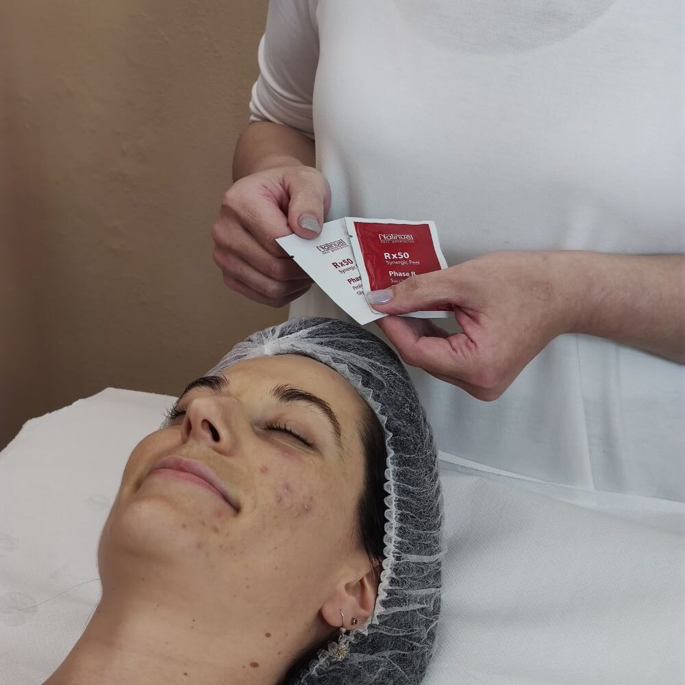 La sinergia dei tre prodotti ci permette una rapida rimozione delle cellule con accumulo di melanina e, nello stesso tempo, un’azione biochimica ad ampio raggio finalizzata a riequilibrare il processo di melanogenesi.